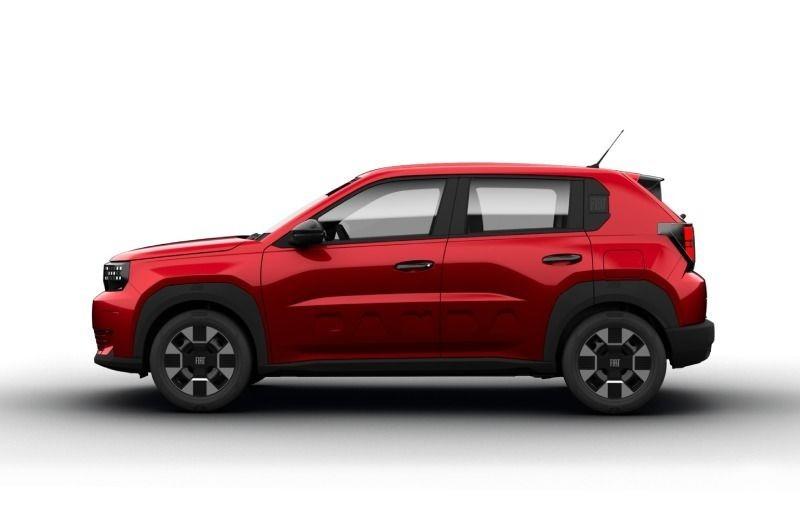 - Panda rear script hard molded in matte black Front upper grill painted black, grey dots tampography Black painted external door handles Rear side wing doors Rear roof spoiler painted shiny black Wheel arches cladding grained, hard molded in matte black Silver metal front and rear bumper skid plate Front logo painted white, glossy coating Sticker "Hybrid" Door panels in plastic grained in matte tasmania blue with fabric inserts External electric rear view mirror, defrost, LED ti, manual folding Side Panda lettering branded on metal Translucent yellow frame lingotto-inspired shape Changing C-pillar logo Grained black B and C pillar Front and rear bumper base Low trims grained, hard molded in matte black Front upper grid with tampography Wheel arch cladding